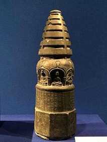 在佛塔的形状上有分为一个是“因”的形状,一个是“果”的形状,我们可以先看佛塔的形状,大概可以分为这样上下两部份。